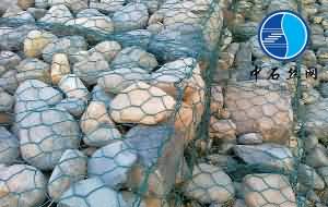 石籠網護墊分表面金屬鍍層和表面 PVC/PE涂層兩個大類。使用的金屬線徑是根據六角形的大小而不同。生產過程是經織網,剪切,鎖邊,綁扎后制成石籠和護墊。石籠和護墊以折疊狀態供貨。